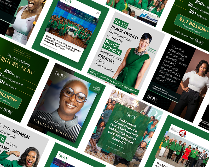 The BOW Collective represents some of the most accomplished women entrepreneurs in the country. Our content strategy focused on telling the stories behind these leaders and their businesses. Through curated posts, member highlights, and leadership messaging, we helped showcase the impact of this network while reinforcing the organization’s mission of collaboration, mentorship, and economic empowerment.